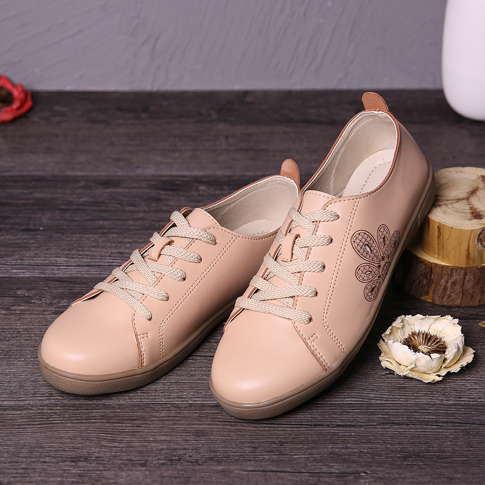 Closed Toe Hollow Out Lace Up Casual Flat Shoes