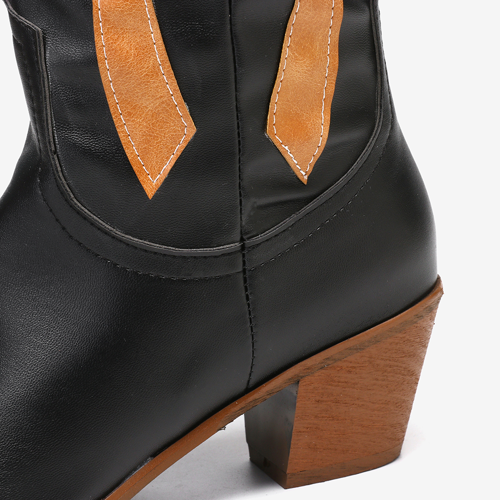 Large Size Women Pointed Toe Splicing High Square Heel Long Cowboy Boots