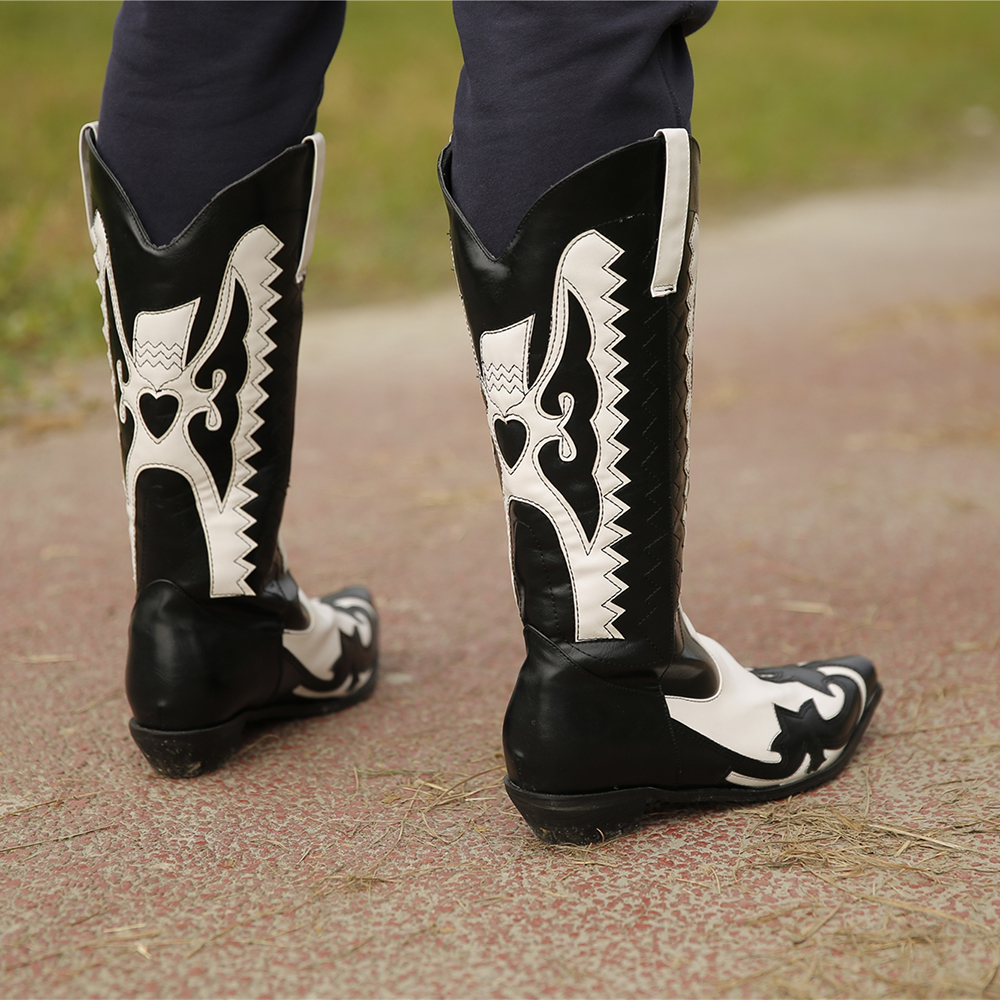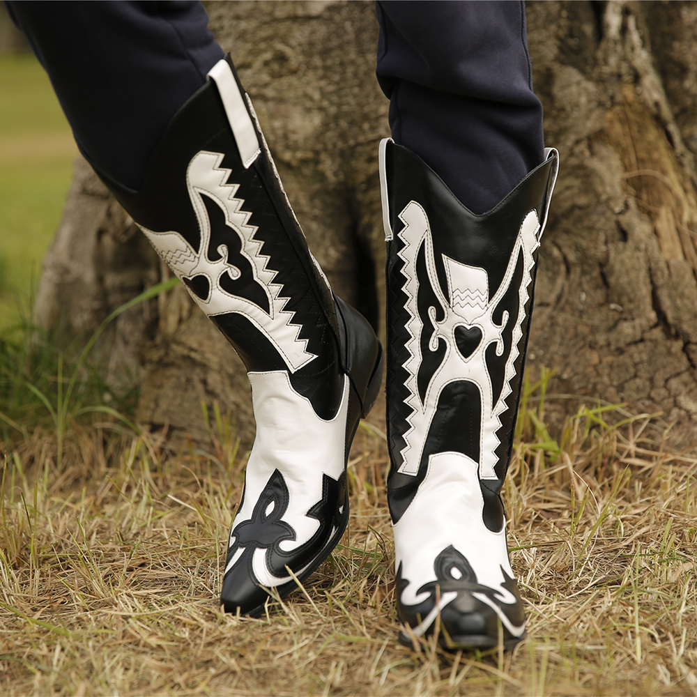 Plus Size Women Pointed Toe Pattern Slip On Chunky Heel Cowboy Boots