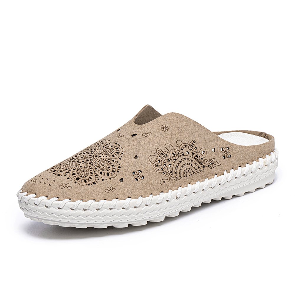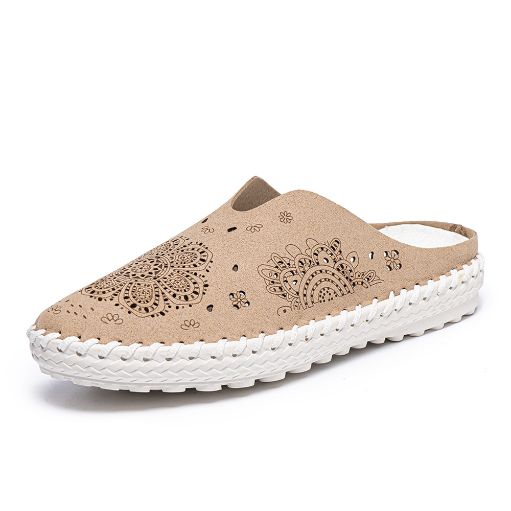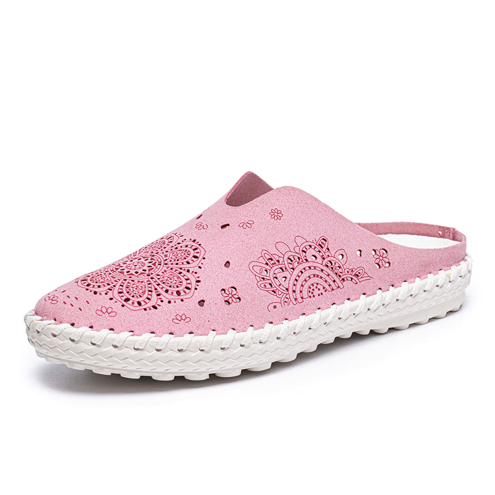 Women Casual Soft Round Toe Light Weight Hollow Out Stitching Backless Slipllers