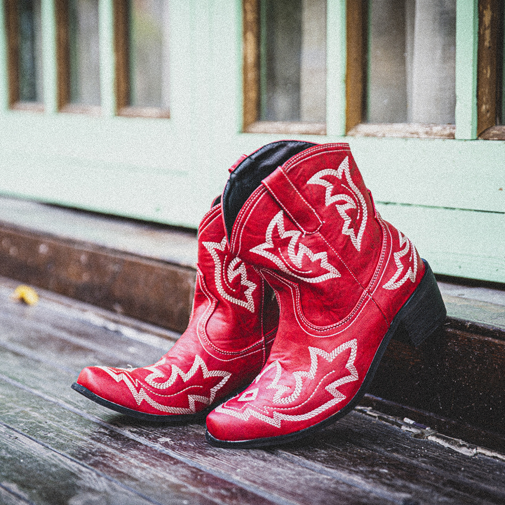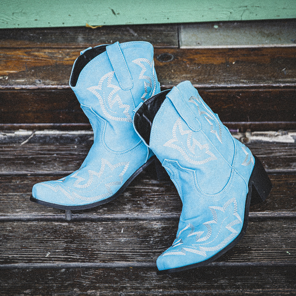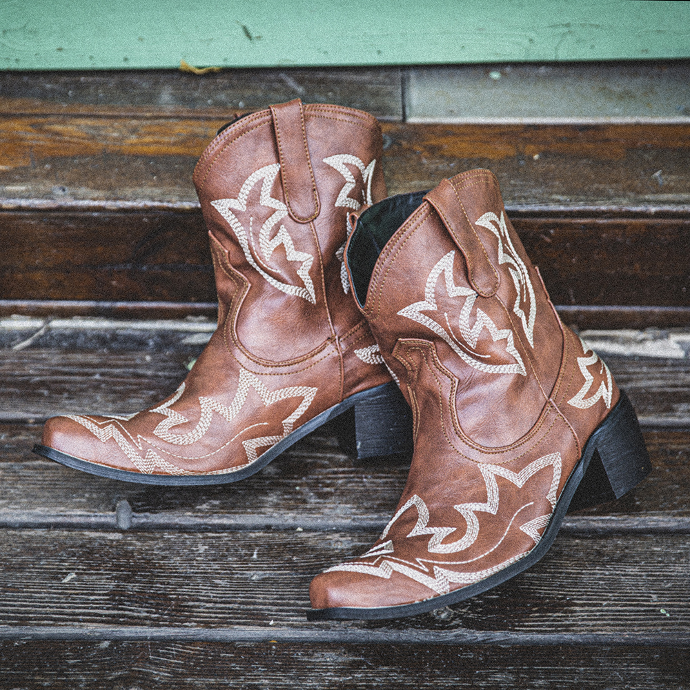 Women Folkways Floral Embroidered Chunky Heel Slip-On Short Cowboy Boots