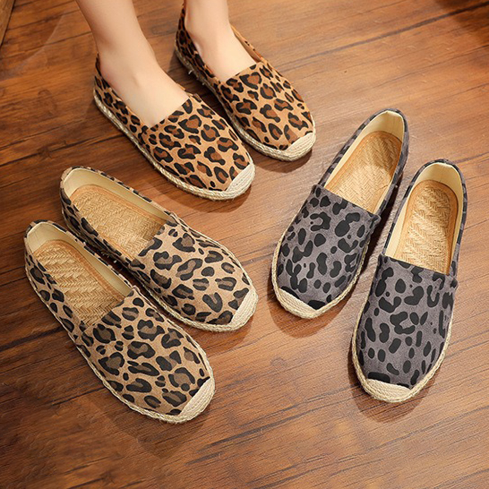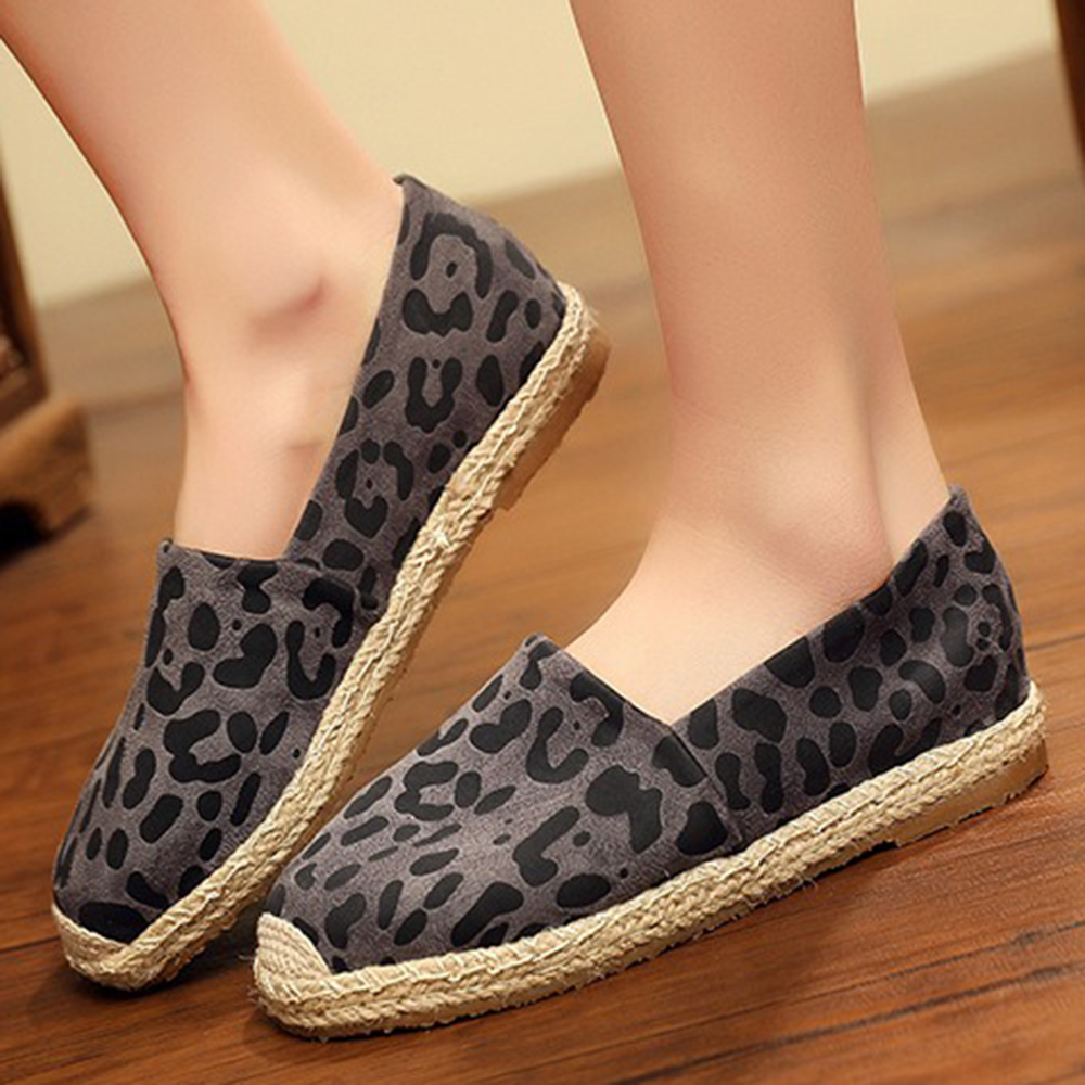 Women Leopard Printing Comfy Lightweight Casual Slip On Espadrille Flats