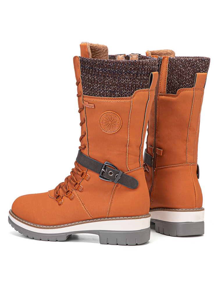 Women Retro Buckle Solid Color Side-zip Casual Knitted Shoe Tube Mid-Calf Snow Boots