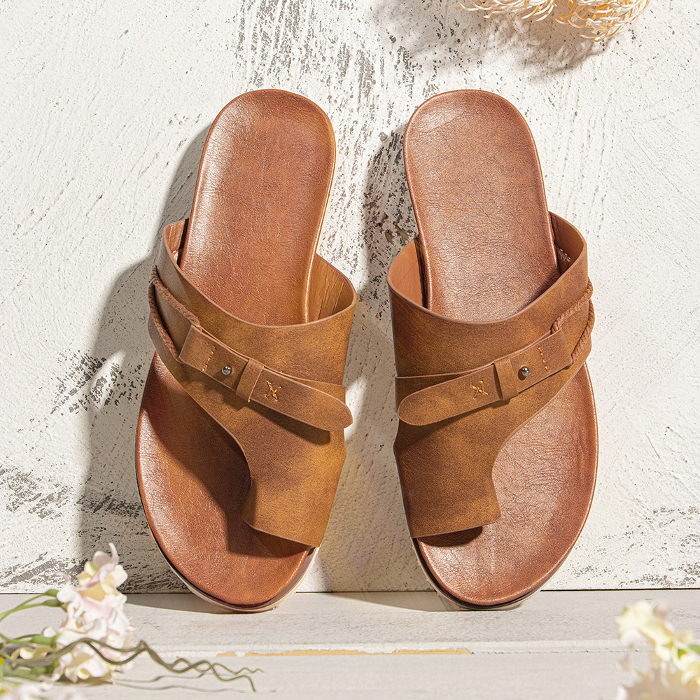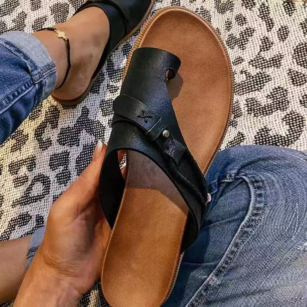 Women Vintage Rivet Woven Laces Solid Clip Toe Flat Casual Slippers