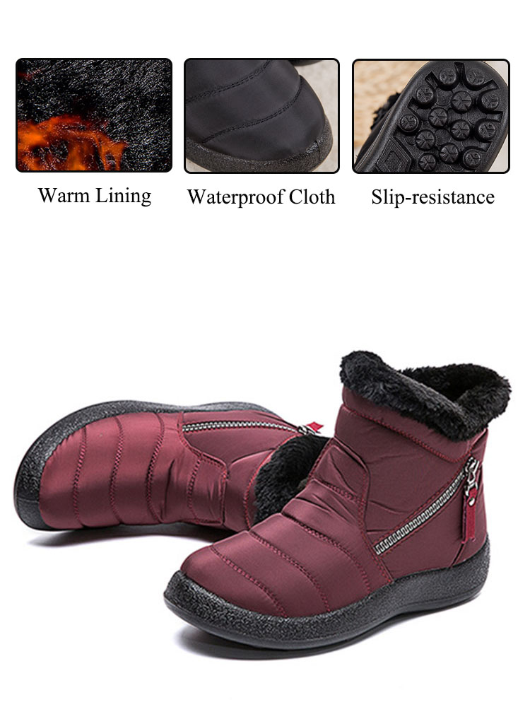 Women's Round Toe Zipper Soft Warm Waterproof Non-Slip Snow Boots