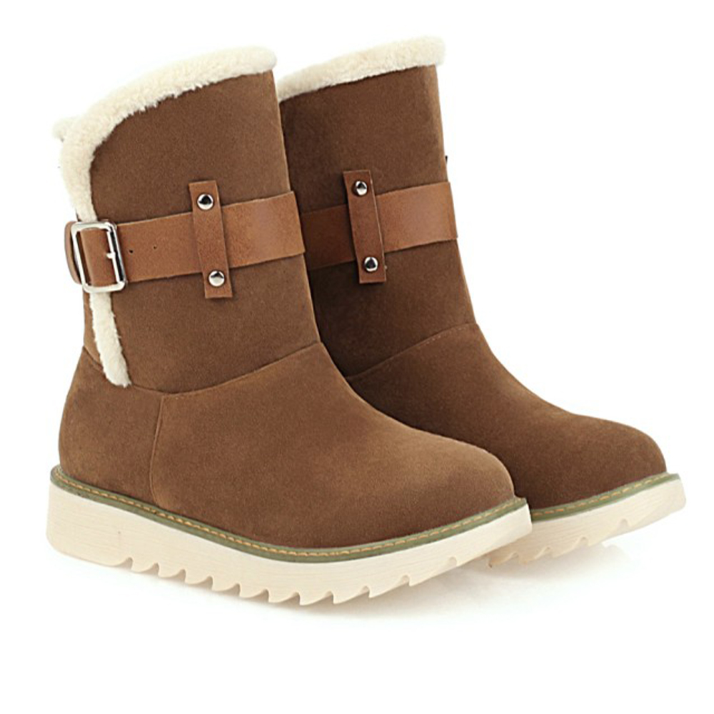 Plus Size Women Suede Fabric Belt Buckle Slip Resistant Short Snow Boots
