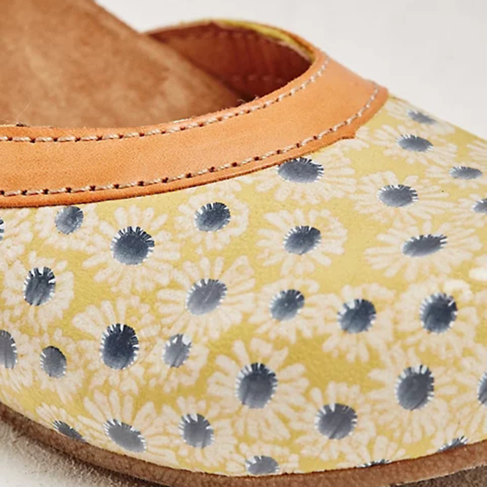Women Flower Pattern D'Orsay Round Toe Ankle Strap Comfy Casual Heels Pumps