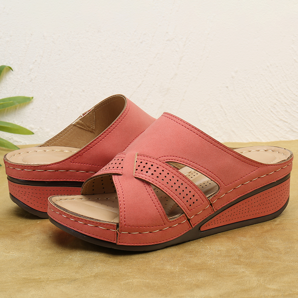 Women Hollow Out Open Toe Solid Color Comfy Summer Daily Casual Wedge Sandals