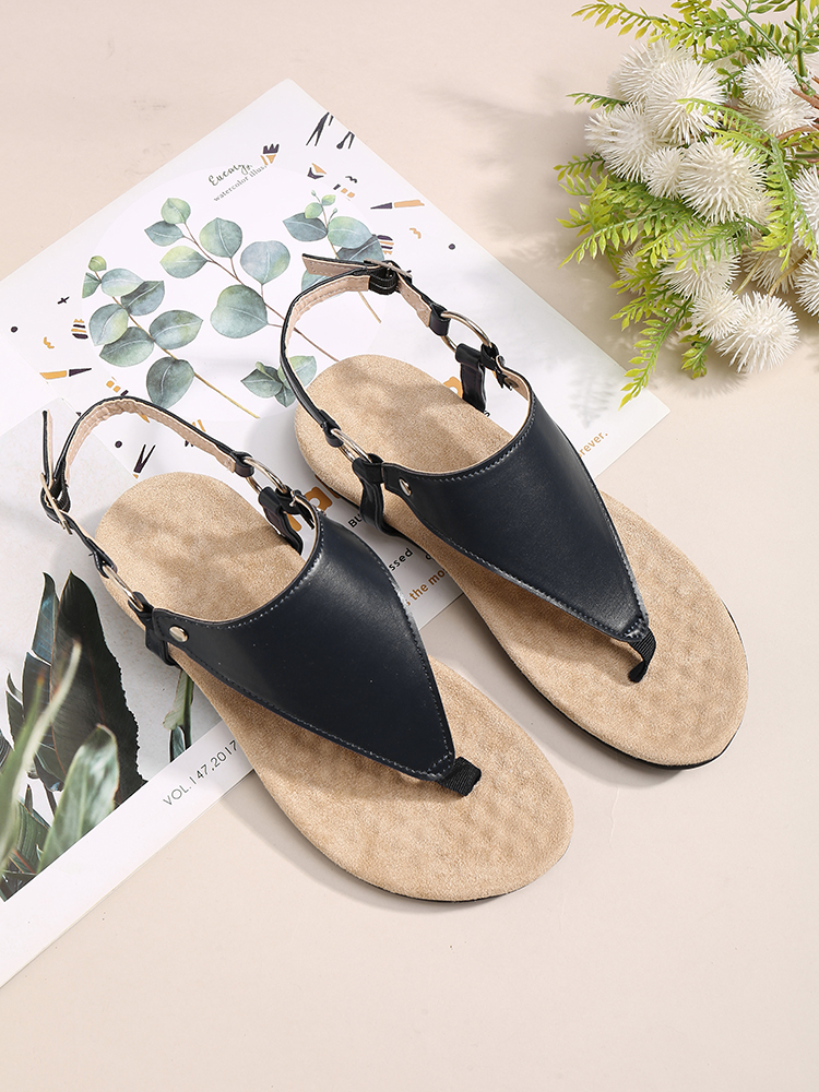 Women Metal Buckle Flip Flops Casual Flat Slingback Sandals