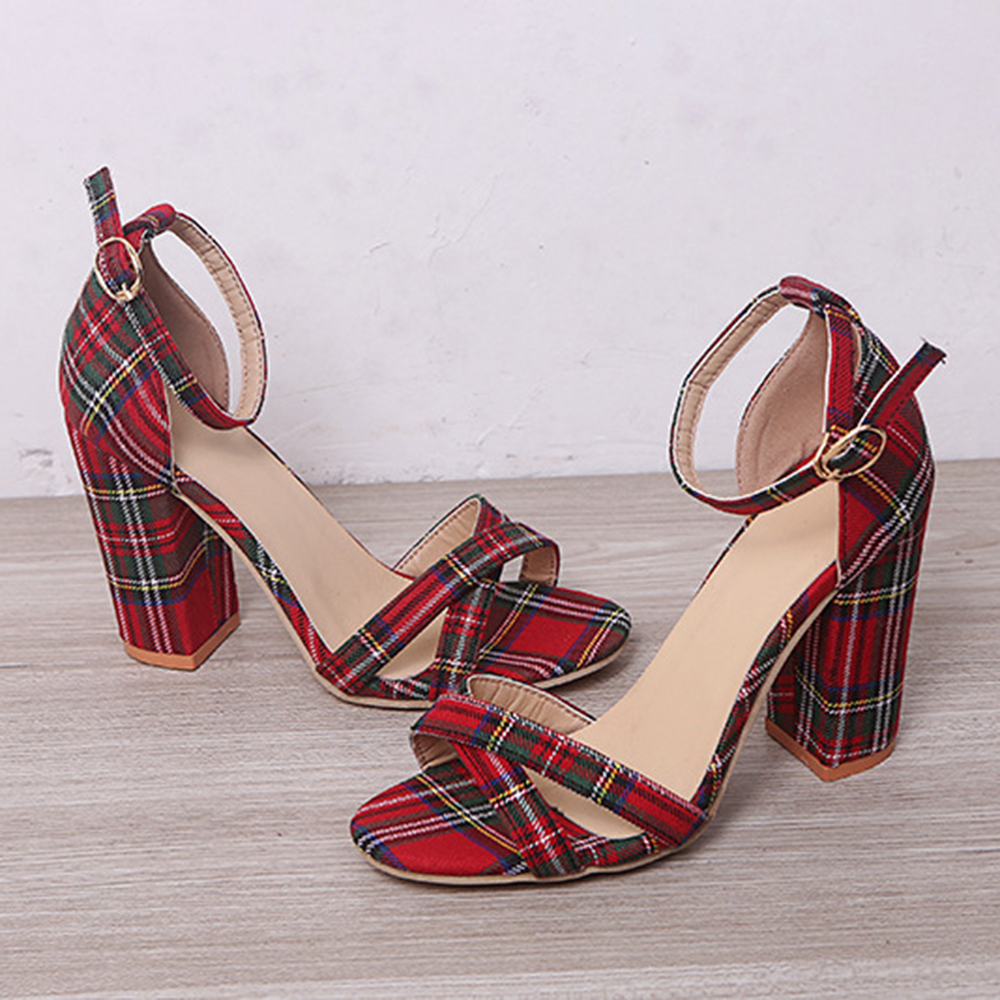 Women Plaid Cross Strap Lattice Decor Buckle High Heel Sandals