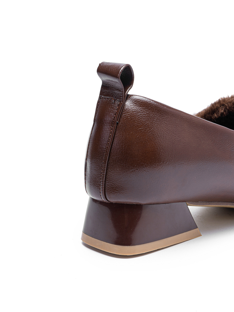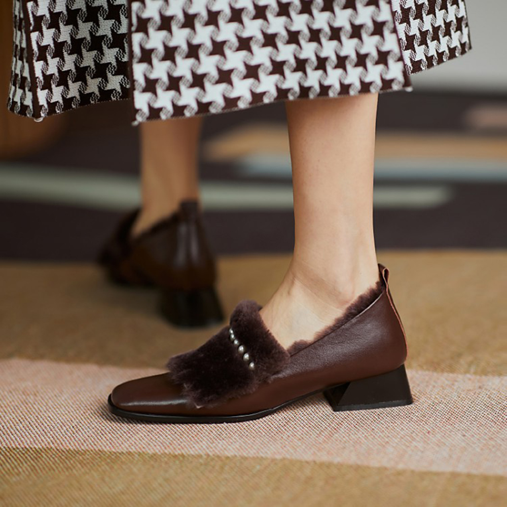 Women Square Toe Fashion Rhinestone Casual Plush Warm Chunky Heels Pumps