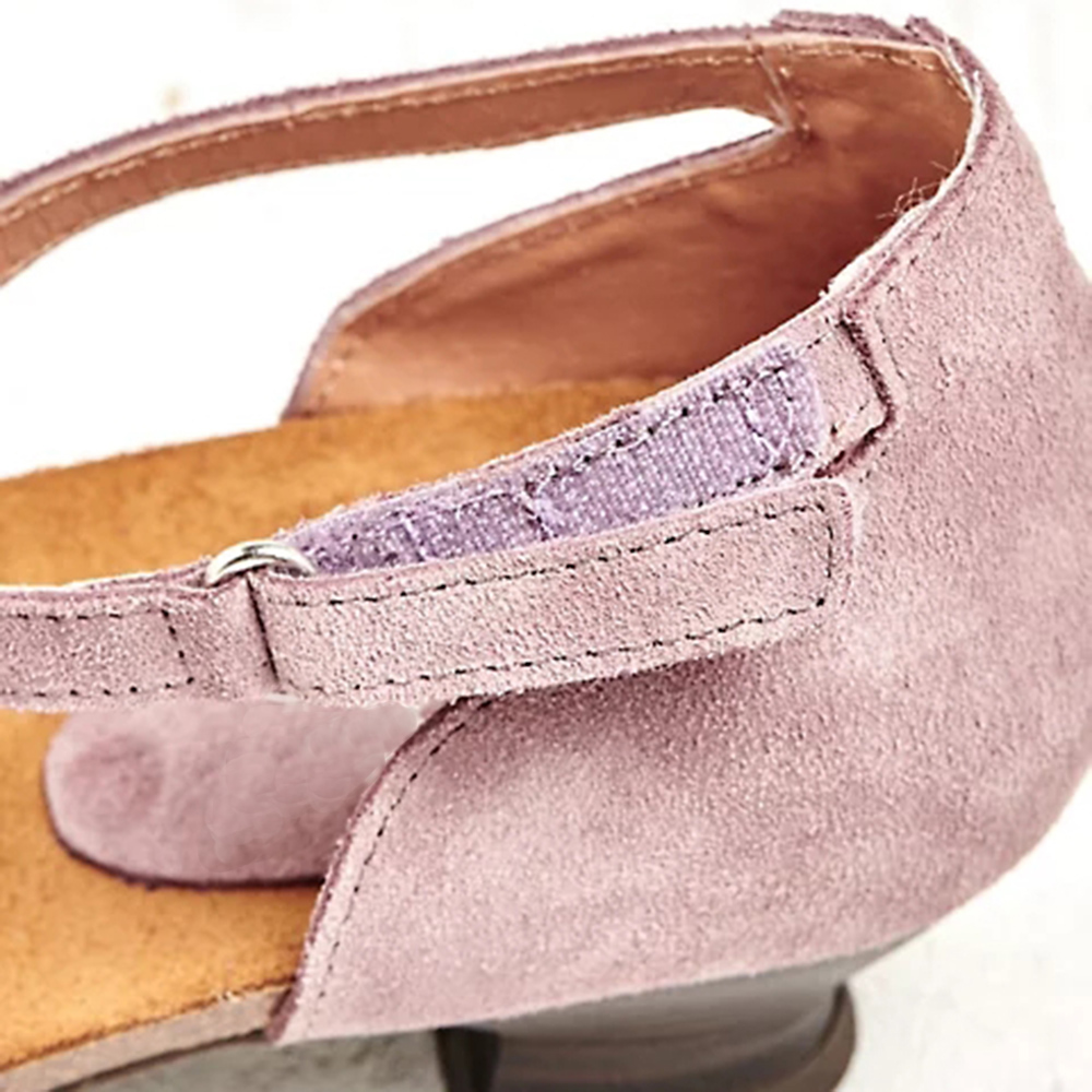 Women Vintage Flower Decoration Round Toe Ankle Strap Hook Loop Casual Heels Pumps