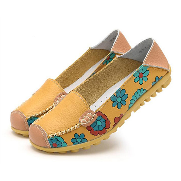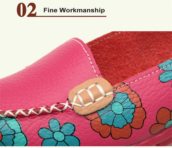 Big Size Women Flower Floral Leather Loafers Moccasins Flats Soft Ballet Shoes Round Toe Flats