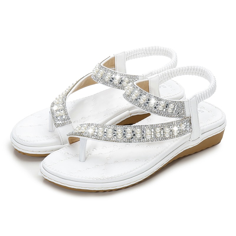 Bohemian Rhinestone Clip Toe Flip Flops Soft Bottom Flat Sandals