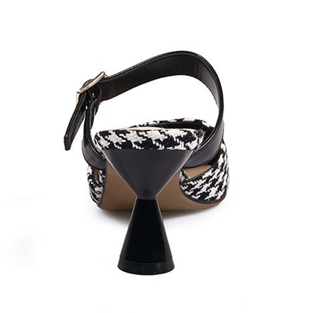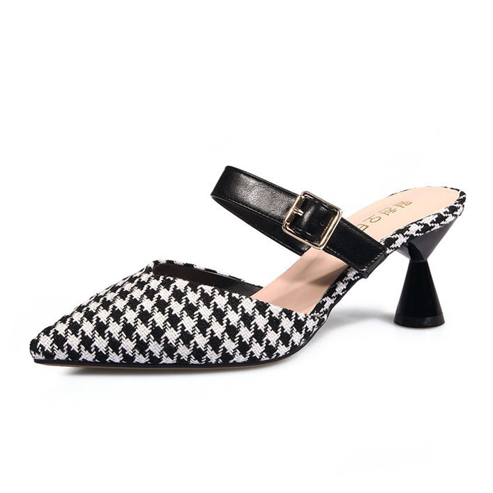Women Retro Elegant Lattice Pattern Pointed Toe Backless Cone Heel Shoes