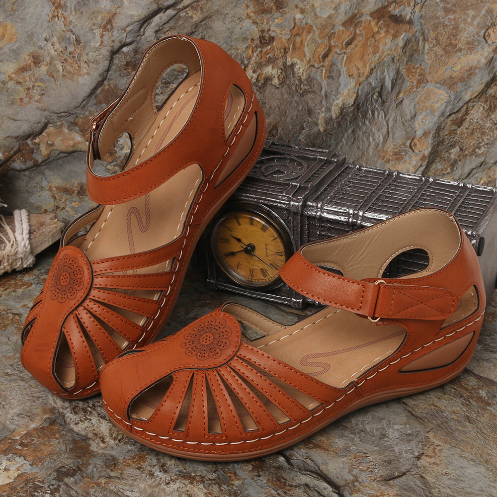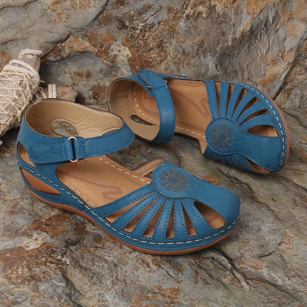 Lostisy Large Size Women Floral Comfy Breathable Hook Loop Sandals