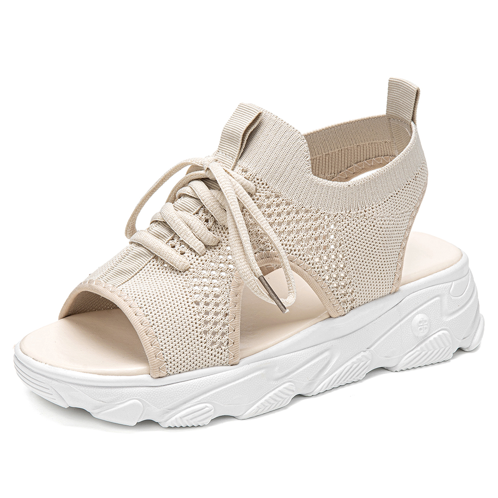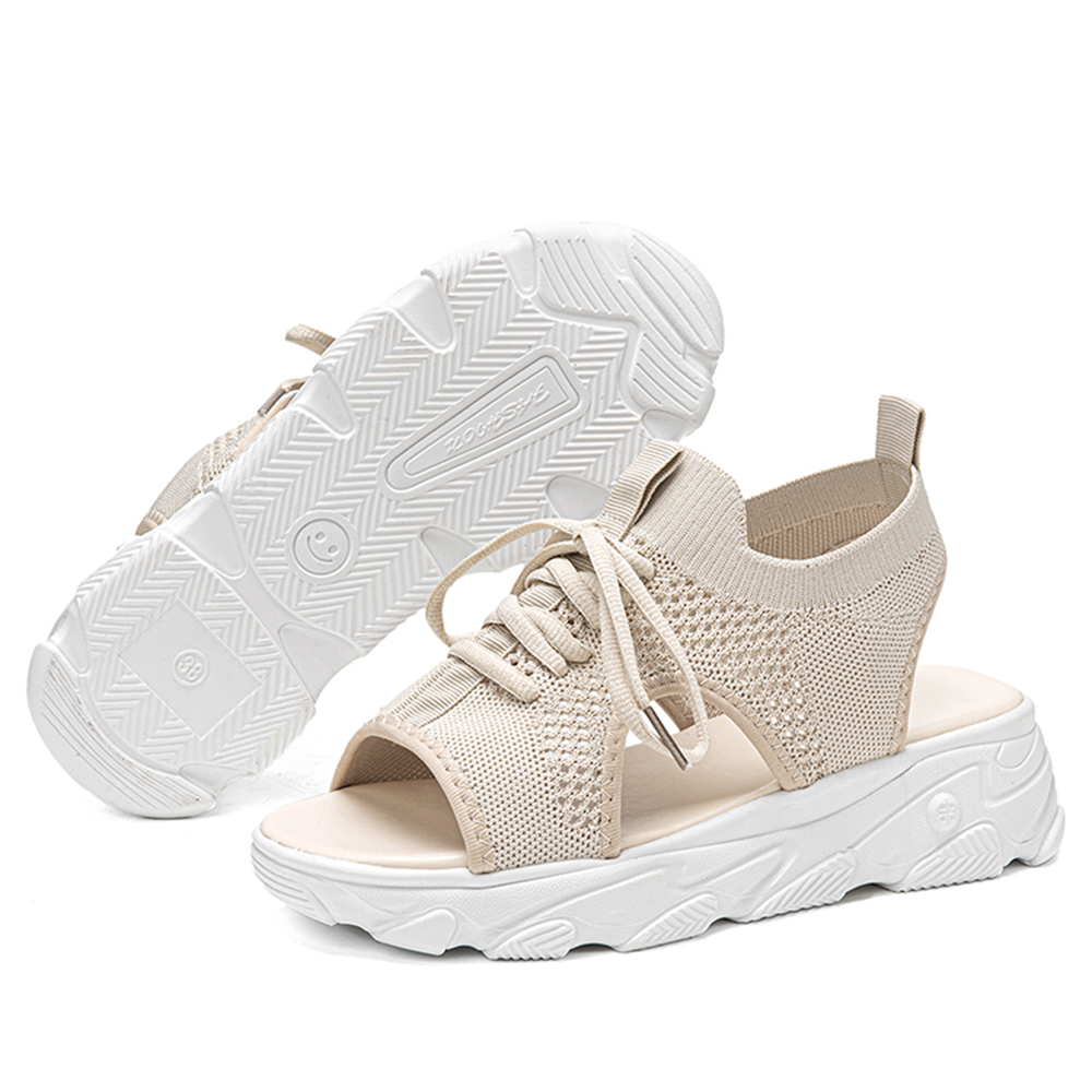 Women Casual Lace-up Comfy Knit Open Toe Platform Sandals