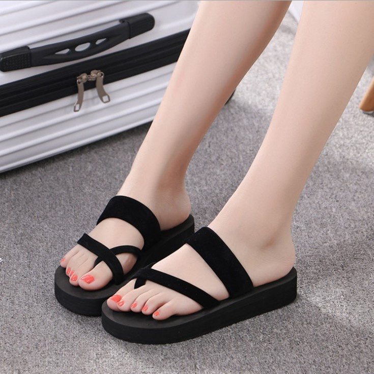 Women Clip Toe Solid Color Casual Home Wedge Slippers