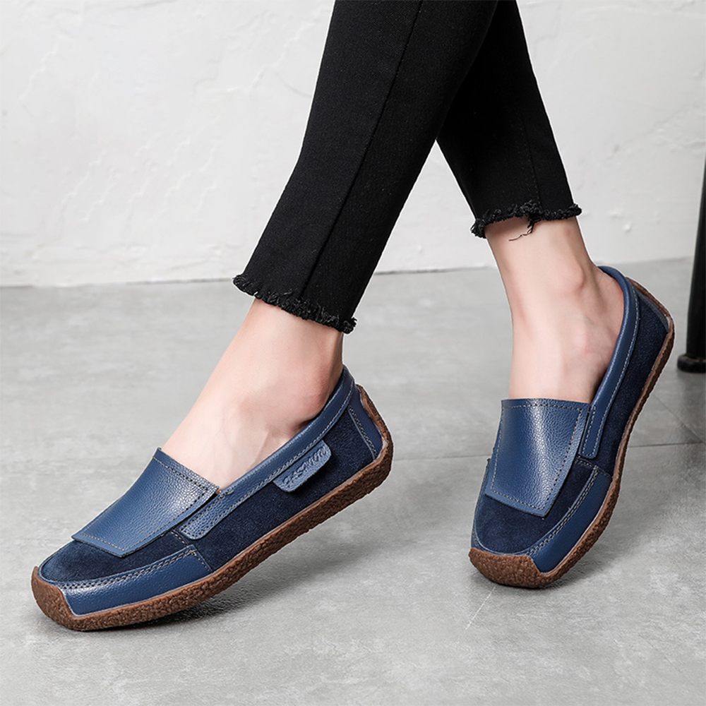 Women Comfy Leather Splicing Soft Slip On Flat Loafers