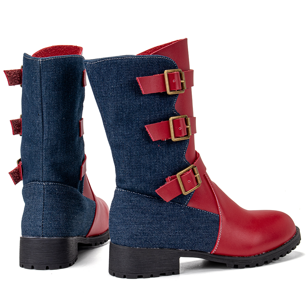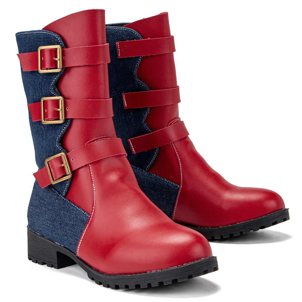 Women Metal Buckle Strap Decor Non Slip Splicing Block Motorcycle Shoes