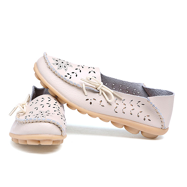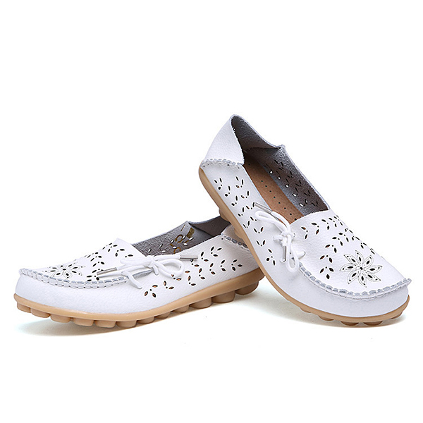 Big Size Women Casual Lace Up Loafers Breathable Floral Hollow Out Comfy Shoes