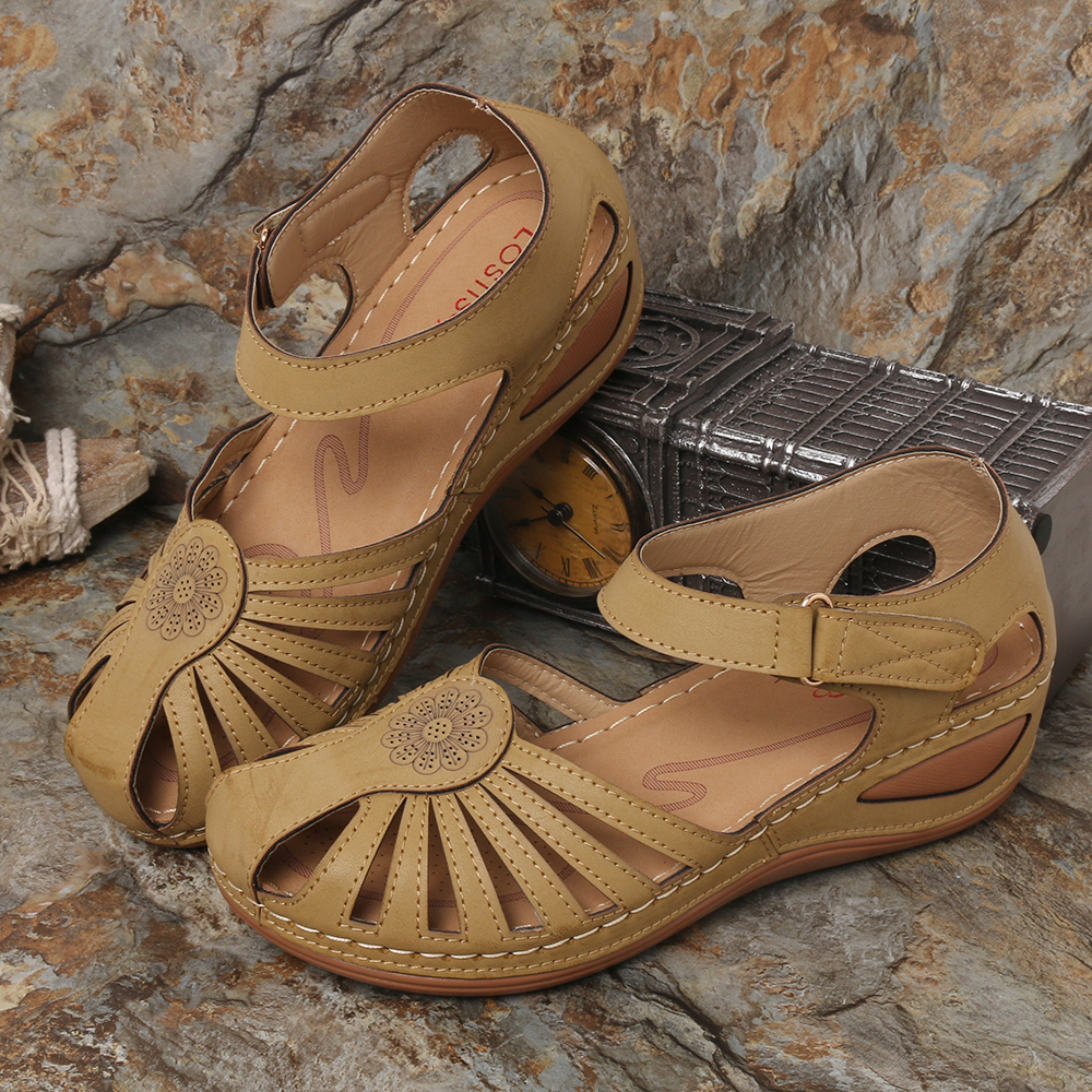 Lostisy Large Size Women Floral Comfy Breathable Hook Loop Sandals