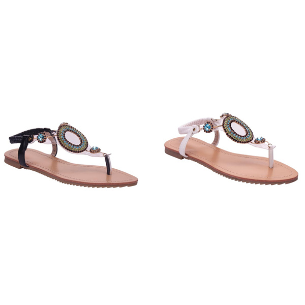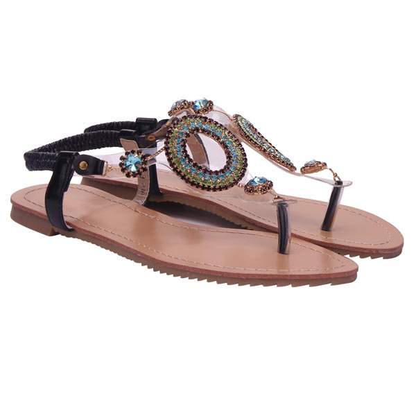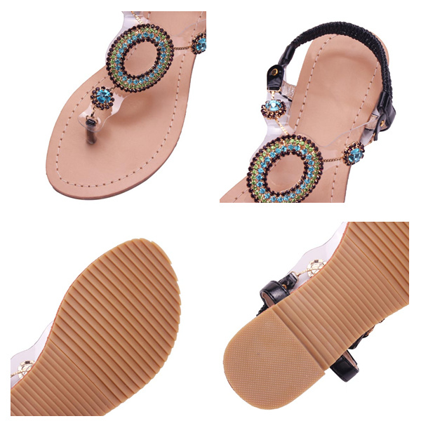 Rhinestone Beaded Elastic Flip Flop Casual Flat Sandals