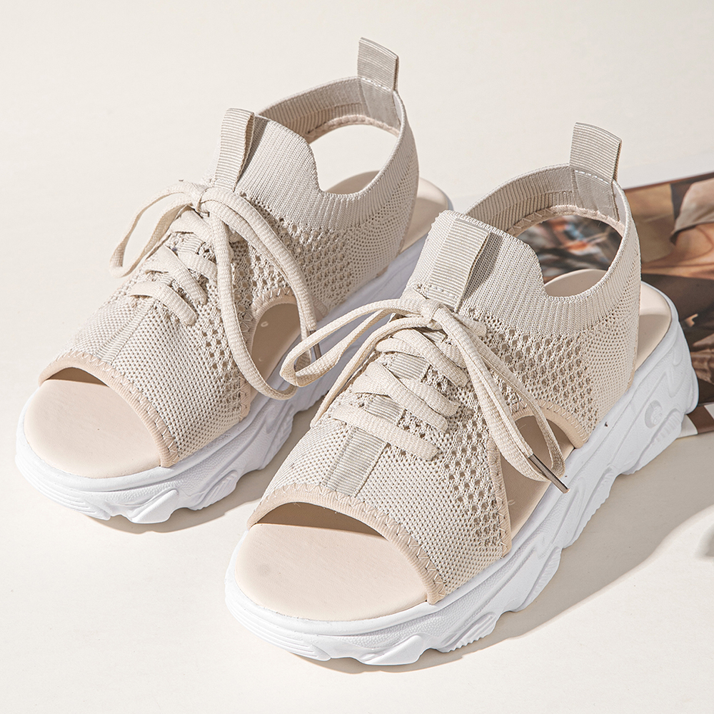 Women Casual Lace-up Comfy Knit Open Toe Platform Sandals