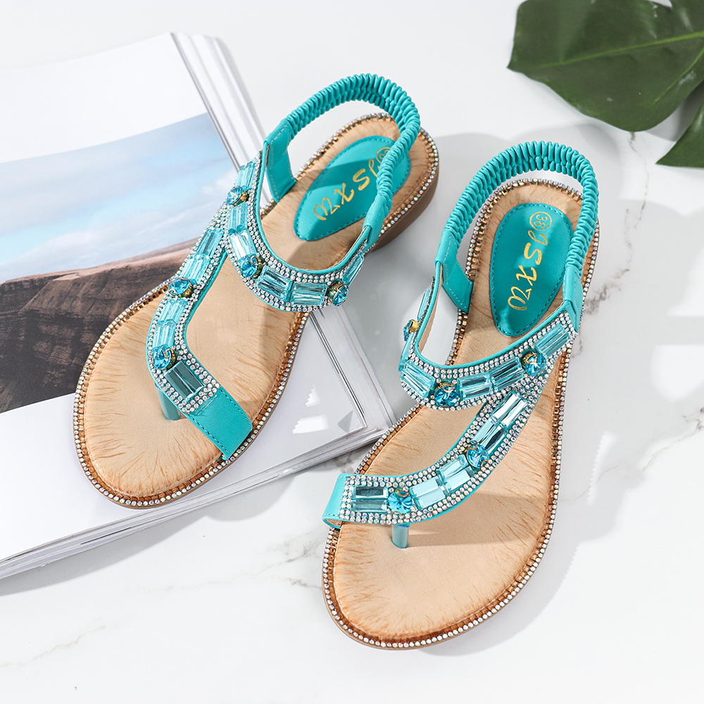 Women Fashion Rhinestone Bohemia Wearable Clip Toe Sandals