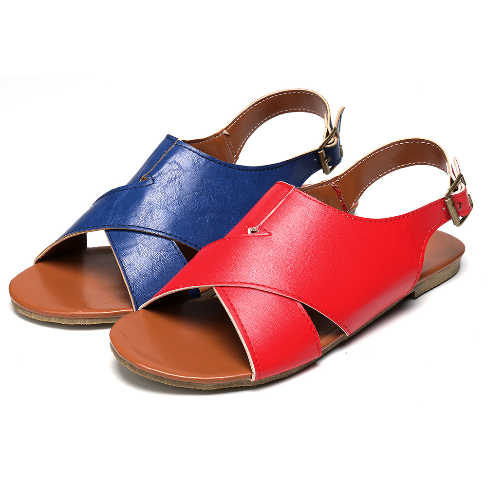 Wome Beach Peep Toe Cross Buckle Flats Sandals