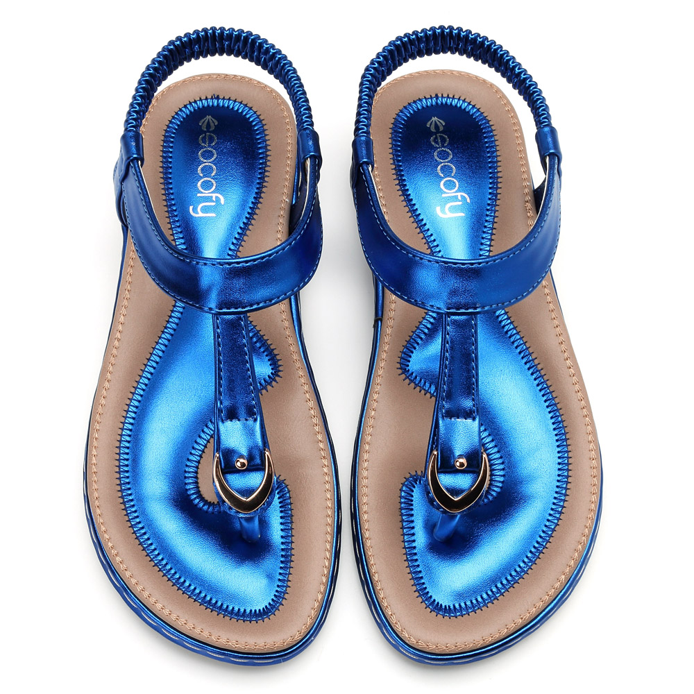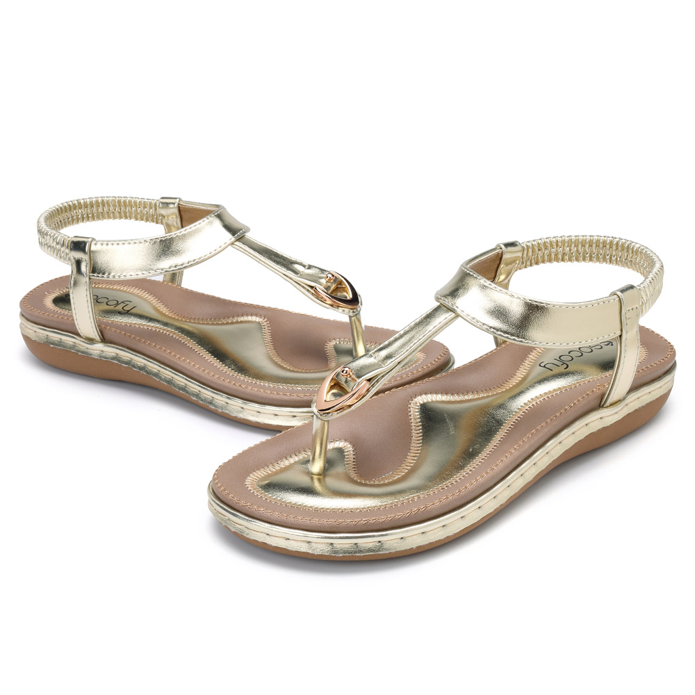 Women Comfortable Clip Toe Elastic Lightweight Slip On Summer Beach Flat Sandals