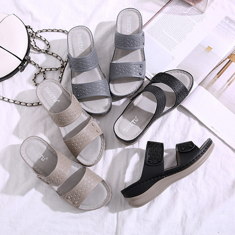 Women Solid Color Soft Sole Summer Casual Daily Wedge Sandals